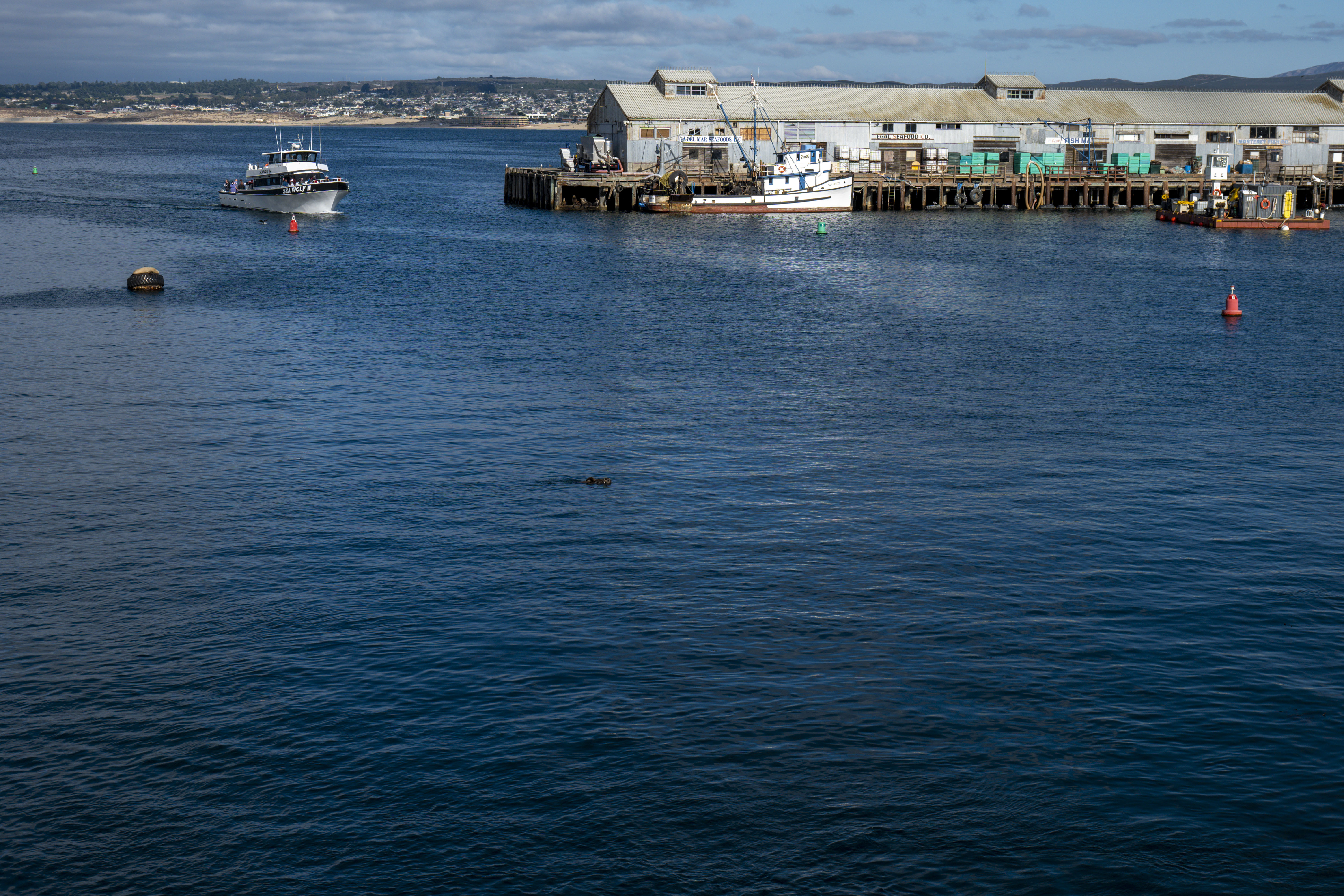 Strolled the market and small pier; calmer than San Francisco and not too touristy. Watched kayaks and sea life in the bay (otters, storks, and more).