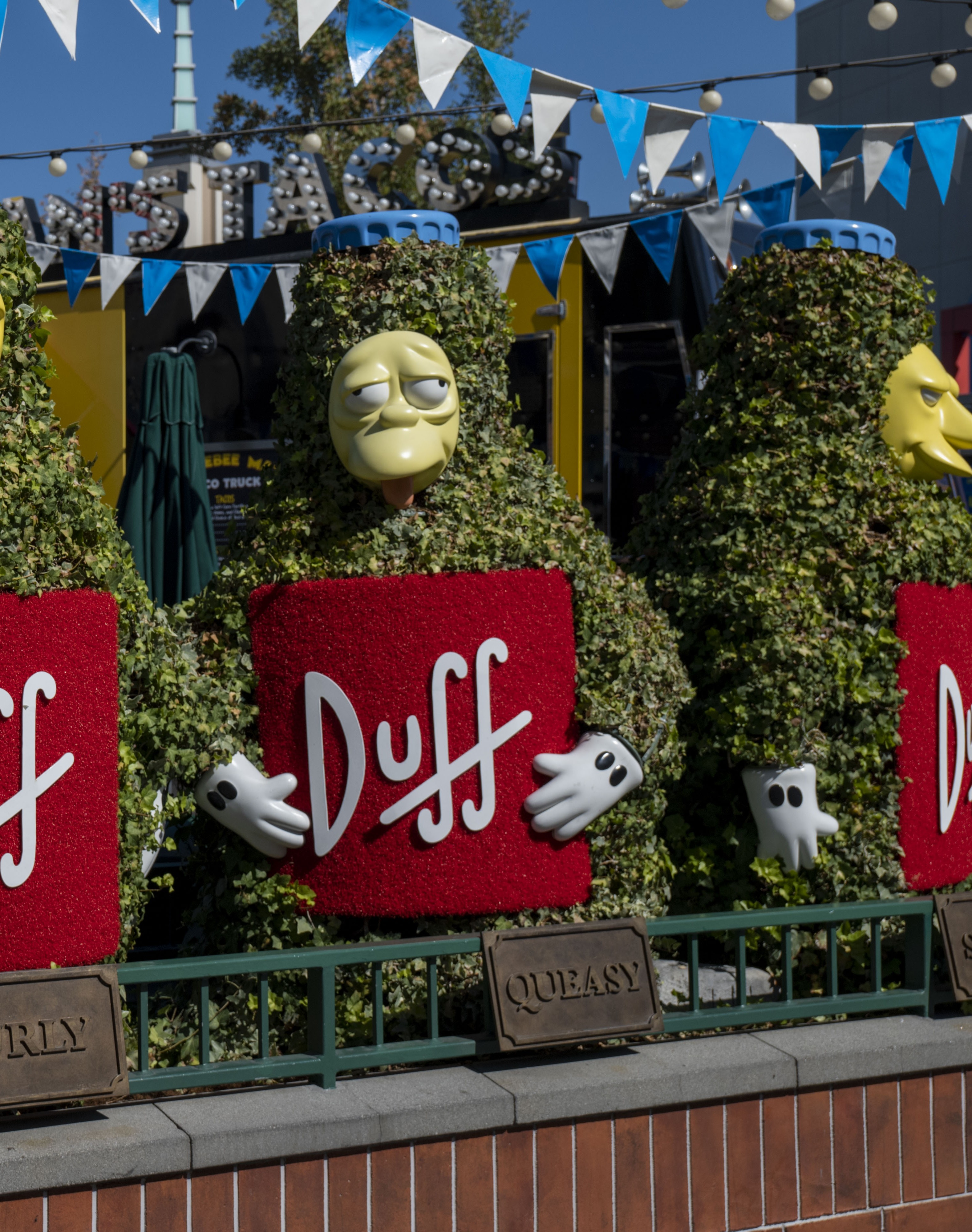 Springfield was brought to life: Krusty Burger, Kwik-E-Mart, Moe’s, Duff Beer were functional as respective establishments. You can even get yourself a duff beer and an enormous Homer donut! As you walk round this area there are various fibre-glass sculptures of characters, again great for photographs.